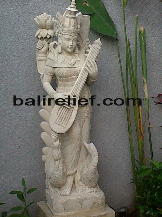 Bali Goddess Statue is carved by local sculptor and made from white stone. It illustrates Dewi Saraswati (Hindus Goddess) which symbolize light, knowledgem and truth.
